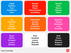 Ένας σημαντικός παράγοντας που επηρεάζει την επιλογή των χρωμάτων είναι η ψυχολογία του χρώματος, Κάθε χρώμα έχει διαφορετική επίδραση στην ανθρώπινη ψυχολογία. Οι παρακάτω είναι μερικές από τις καθολικές επιδράσεις των χρωμάτων: